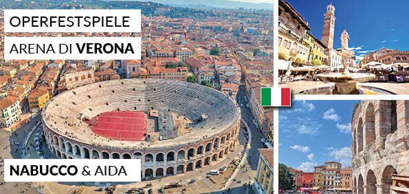 Seit 25 Jahren ist die Altstadt von Verona ein UNESCO-Weltkulturerbe - und dies erlebt der Besucher in der Stadt auf Schritt und Tritt... Ein Ausflug in das benachbarte Vicenza führt dagegen die Pracht der Renaissance vor Augen! Höhepunkt unserer Reise ist das Erlebnis der Opern Nabucco und Aida in der einzigartigen Kulisse der Arena.