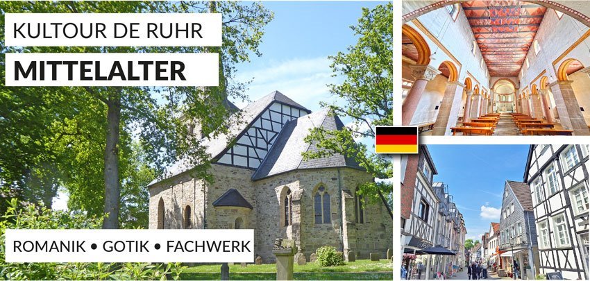 Ein Großteil der mittelalterlichen Schätze des Ruhrgebietes befinden sich im malerischen Tal der Ruhr. Unsere KulTOUR entführt Sie zu großen Architekturen und versteckten Schätzen des 10. bis 13. Jh.! Entdecken Sie in Werden die „älteste Pfarrkirche nördlich der Alpen“ ebenso wie das Grab des Gründers des Bistums Münster! Erleben Sie die malerische Landschaft an der Ruhr, die Fachwerkschönheit Hattingens und die Einzigartigkeit der zu ottonischer Zeit gegründeten Dorfkirche von Bochum-Stiepel!