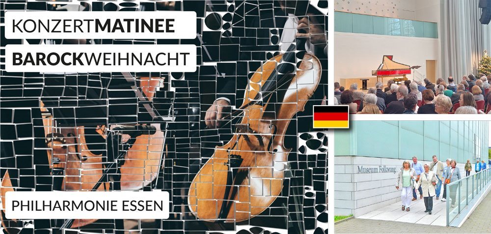 Die Essener Philharmoniker setzen ihre bewährte Reihe der Kammerkonzerte an Sonntag-Vormittagen auch im Advent fort und erlauben uns somit, Ihnen stilvolle Tagesausflüge mit hohem Erlebniswert anzubieten! Wir vervollständigen das Programm des Tages mit dem Besuch des nahegelegenen Folkwang-Museums, dessen großartig Dauerausstellung unser Ziel ist!