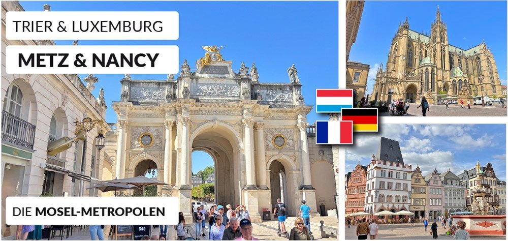 Trier & Nancy, Luxemburg & Metz - nicht alle liegen direkt an der Mosel - aber sie sind die kulturellen „Taktgeber“ der Region. Hier begegnen Sie den Römern und den Herzögen Lothringens, den Luxemburgern, den Kaisern des Heiligen Reiches, polnischen und französischen Königen, den Preußen... In diesen schönen Städte mit ihrer wunderbaren Atmosphäre wird Euorpas Geschichte lebendig!