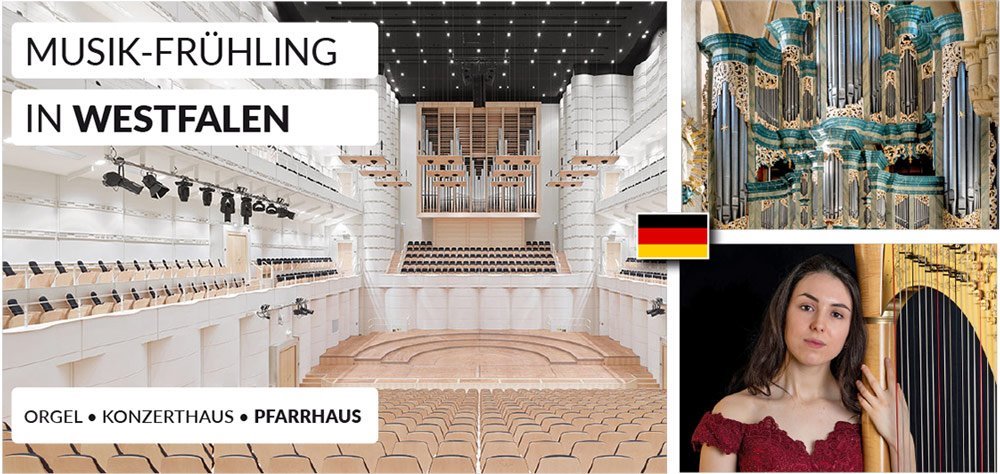Erleben Sie die Möller-Orgel von 1751 im Kloster Marienfeld bei Harsewinkel, das ASASELLO-QUARTETT im historischen Pfarrhaus Alt-Vellern und eine Matinee junger Künstler mit Harfen- und Flötenklängen in Dortmund!