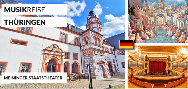 Im Thüringer Wald steht das Meininger Staatstheater - um 1900 weltweit bekannt und stilbildend! In der wunderbaren Atmosphäre des Großen Saales genießen Sie einen ARIENABEND und können sich gleichzeitig auf weitere Höhepunkte der Region freuen, die von großer Geschichte, Musik und Lebensläufen geradezu überfüllt ist! Sie besuchen die Heimatregion Johann Sebastian Bachs, erleben die herrliche Orgel von Gräfenroda, das Renaissance-Schloß von Ohrdruf, das Theatermuseum von Meiningen und nicht zuletzt die wunderbare Landschaft Thüringens!