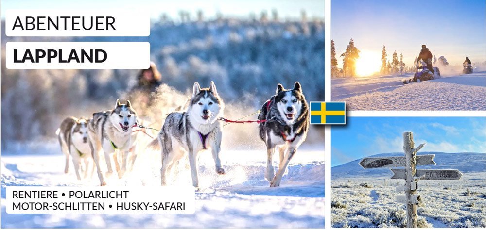 Unsere Traumreise ab Köln/Bonn an den winterlichen Polarkreis entführt Sie in die atemberaubende Welt der Sami, der Rentiere, der Schlittenhunde und der schneebedeckten Weiten des Polarkreises.